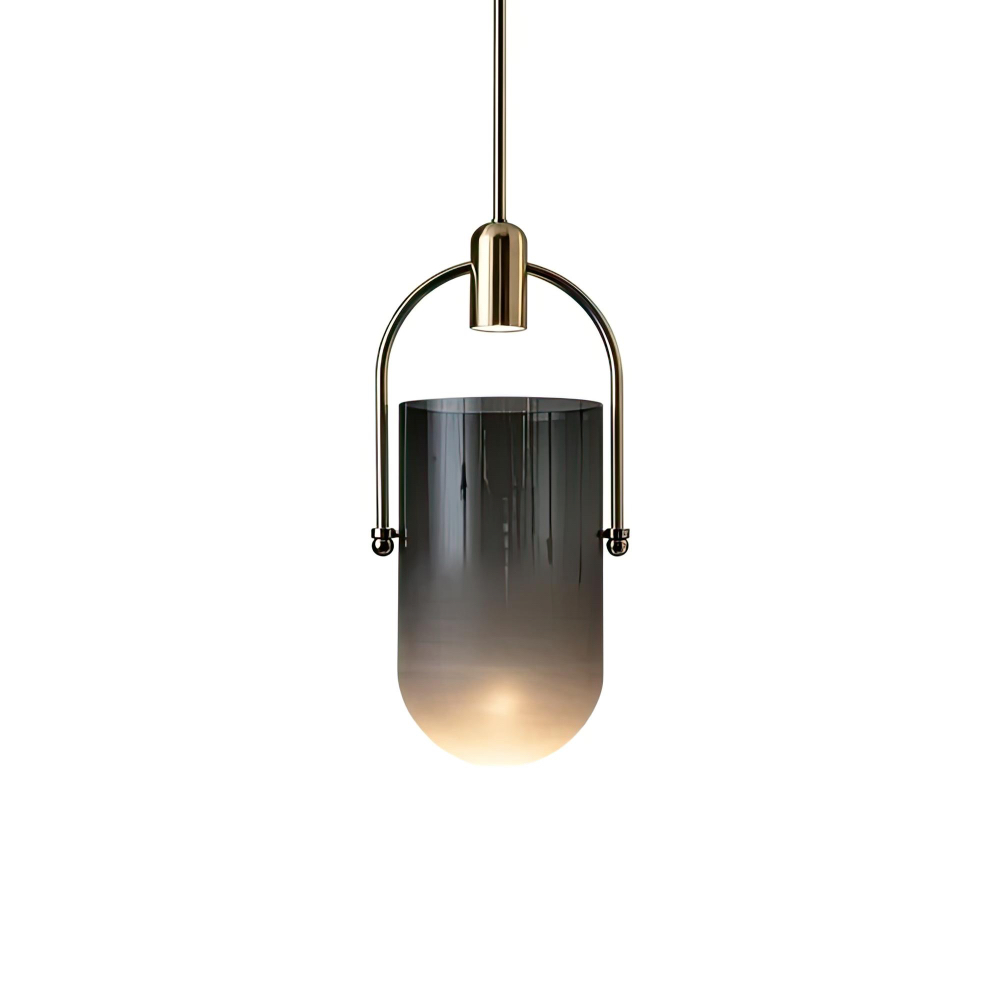 Die Hängeleuchte Lumora ist ein elegantes Statement-Stück für moderne Wohnräume. Ihr charakteristischer, rauchgrauer Glaszylinder erzeugt einen sanft gedimmten Lichteffekt, der dem Raum Tiefe und Atmosphäre verleiht. Die geschwungene Metallhalterung mit glänzender, goldfarbener Oberfläche verleiht der Leuchte eine edle Architektur und macht sie sowohl eingeschaltet als auch ausgeschaltet zu einem Blickfang.