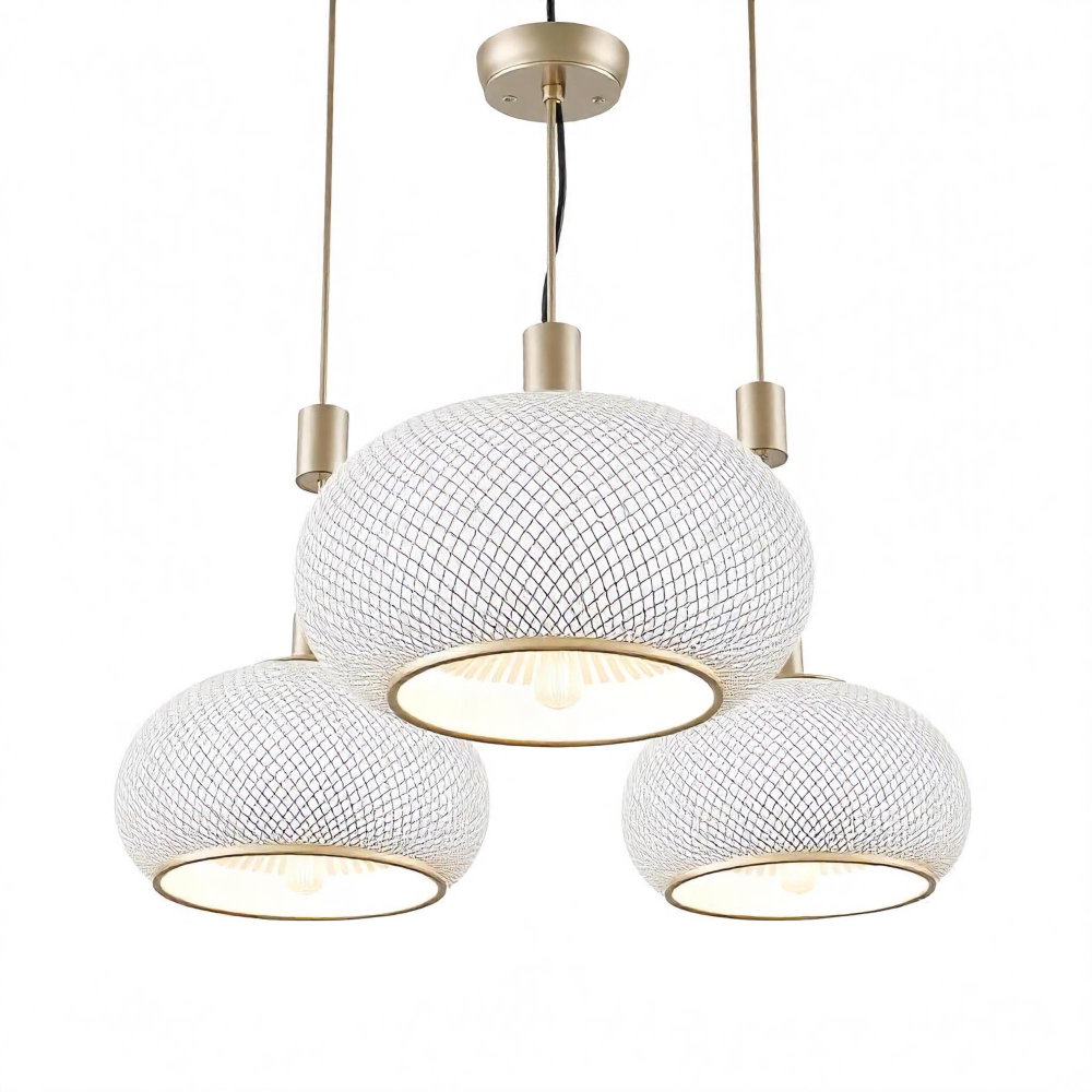 Schreibe die erste Rezension für „Pendelleuchte „Nivora“ – Dreiflammige Designerleuchte mit strukturierten Glaskuppeln“